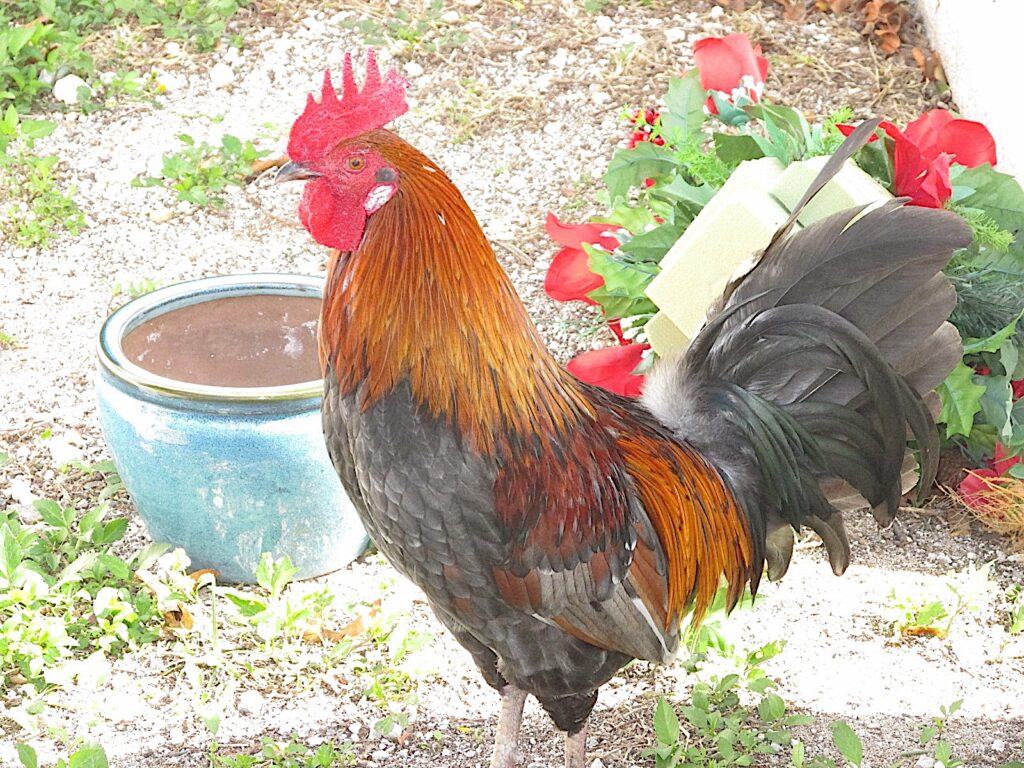 This is where the dead people of Key West live, along with the iguanas and kaleidoscopically colorful live chickens who roam at will. Key West is a small island with a high water table, and even though we stand on the highest land in Key West — very pleasing to Highpointers Lisa and me — underground vaults and plots would instantly suck up ground moisture and become soaked. All these dead bodies would be in even worse waterlogged condition. Very yucky.