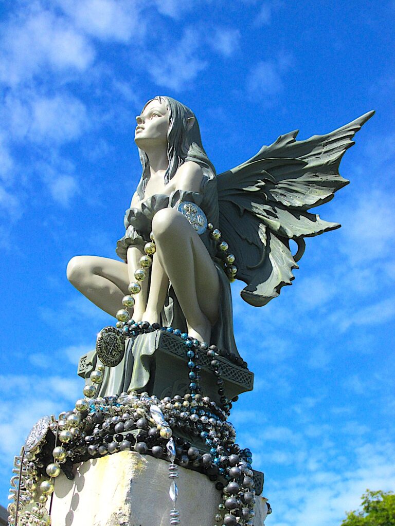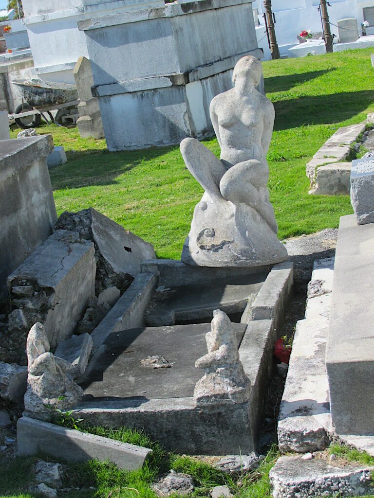 A nearby gravesite is overseen by a hot nymph, also decked out with Mardi Gras style bead necklaces. Tinker Bell has nothing on this spritely babe.