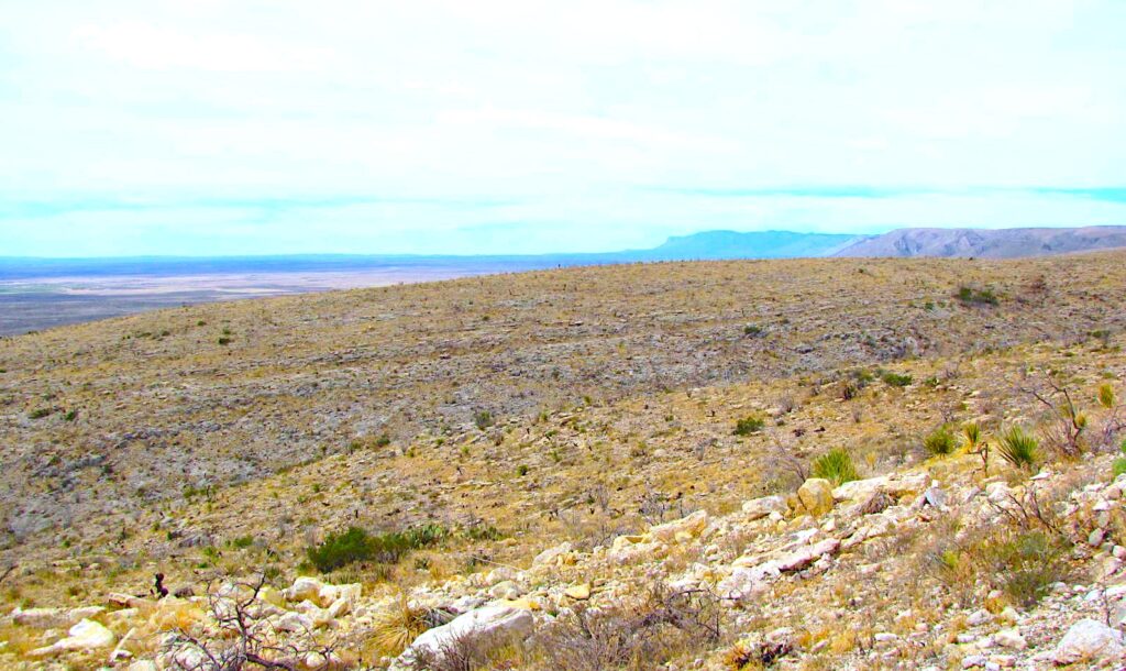 From the parking lot at Carlsbad, we look across the desert and, although no one tells us that this is them, we can see our ultimate destination for this trip in the distance, the Guadalupe Mountains in Texas.